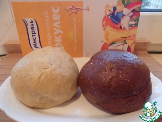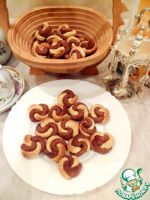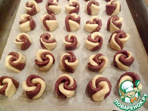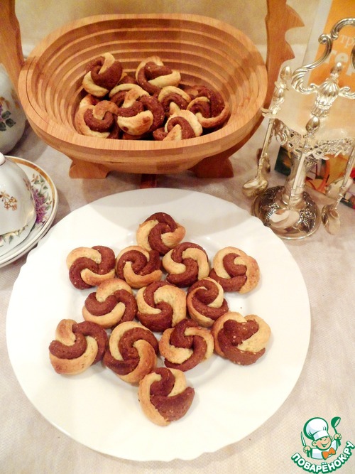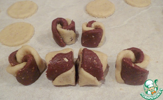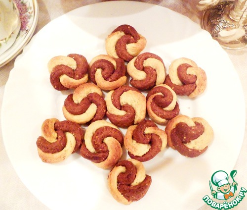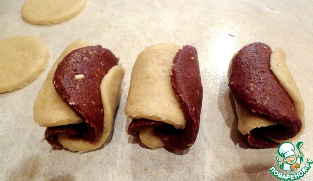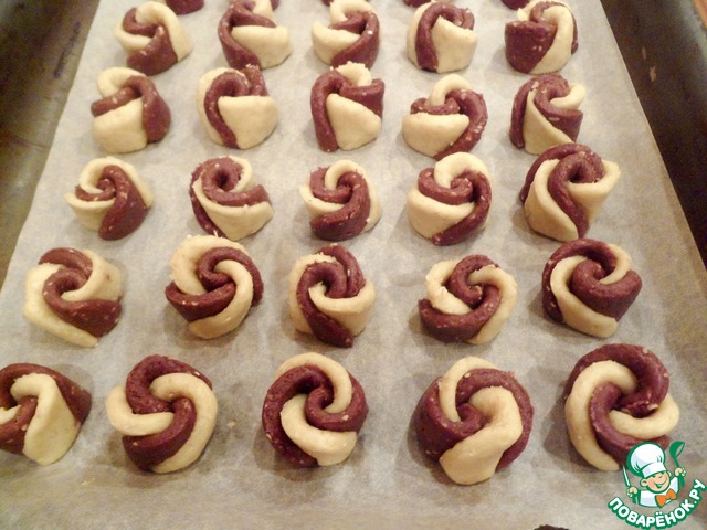 Замесить пластичное тесто. Разделить его на 2 части. Если тесто покажется жидковатым, можно положить еще немного муки, но не перестарайтесь, печенье может стать жестким!