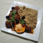 Kefta Tagine. Марокканский тажин с тефтелями из баранины и яйцом "глазунья" в пряном томатном соусе. У меня сегодня очень вкусное марокканское блюдо - Kefta Tagine. Именно такой подают в марокканском ресторане Le Timgad в Париже, который расположен недалеко от Триумфальной арки (если будете проходить мимо, зайдите попробовать оригинал))). Отличительной чертой этого тажина является наличие в нём тефтелей из баранины, тмина, паприки, шафрана, яиц "глазунья" и оливок. Лучше всего подавать такой тажин с кускусом, но и с рисом тоже будет не плохо. И обязательно (!) подать свежие лепёшки! Ими очень вкусно вымакивать пряный томатный соус и жидкий желток, вытекающий из "глазуньи". И про кинзу, про кинзу не забудьте! Именно она завершает и собирает воединно всю вкусовую гамму. Естественно, тажин готовят и подают в определенной национальной посуде, но и в сковороде он получается ничем не хуже)))