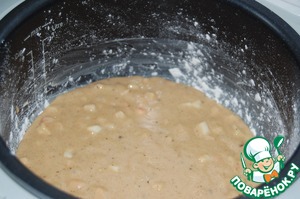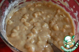 Соединить все ингридиенты. Тесто я замешивала ложкой, знаю по опыту, что такое тесто не любит излишнего взбивания.