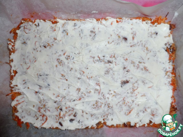 Форму застелить пергаментом. Выложить массу в форму и выпекать в духовке, разогретой до 180 градусов минут 40.