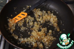 Луковицу измельчить и обжарить в растительном масле до золотистого цвета.