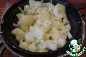 Капусту отварить в подсоленной воде до полуготовности, затем откинуть на дуршлаг,
