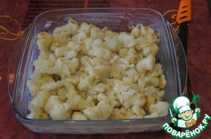 В сотейник или форму для запекания, смазанную маслом, выложить соцветия капусты,