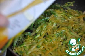 Добавляем нарезанные (натёртые) цуккини и обжариваем до прозрачности.