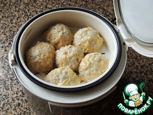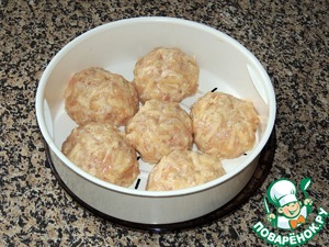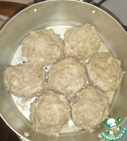 Влажными руками сформировать котлетки и выложить их чашу-пароварку. Из этого количества фарша получается 6-7 штук (на одну загрузку).