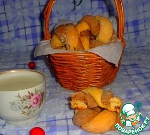 Переплести друг с другом и сформировать кольцо. печенье выкладываем на противень и ставим в разогретую духовку, готовность проверяем сухой спичкой.