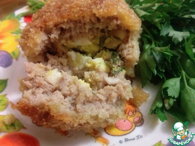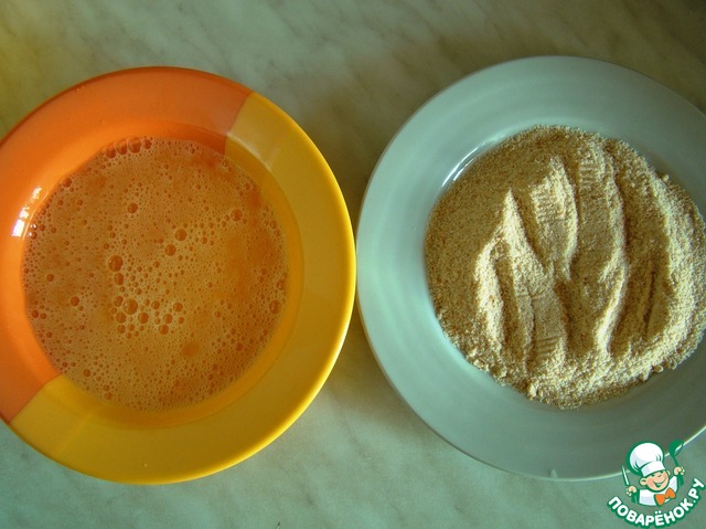 Обмакиваем зразу в яйце и панировочных сухарях.