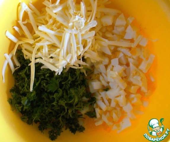 - Яйцо куриное (3 варёных в начинку, 2 сырых для кляра) — 5 шт