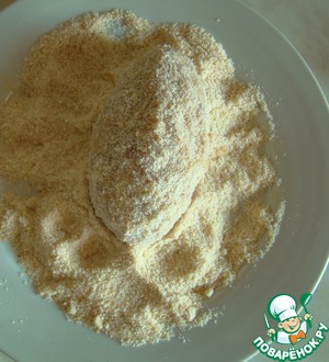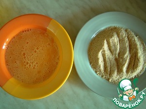 В другую тарелку насыпем панировочные сухари. -