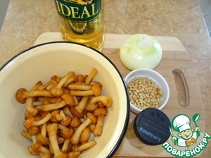 Ингредиенты для «Лодочки из кабачка с опятами и кедровыми орехами»: