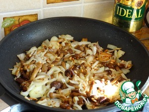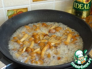 Опята выложить на сковороду и на сильном огне испарить с них воду;