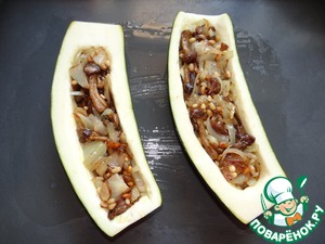 Рецепт «Лодочки из кабачка с опятами и кедровыми орехами»: