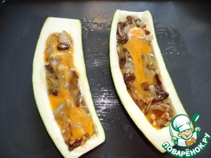 Выложить начинку внутрь кабачков;