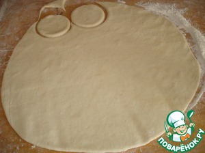 Тесто раскатать, вырезать кружки стаканом. Обрезки снова раскатать и т. д.
