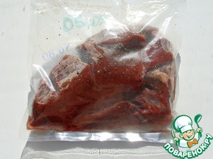 Сердце тщательно натёр смесью соли со специями и уложил в пакет из толстого полиэтилена. Слегка выдавил из пакета воздух и аккуратно запаял пакет при помощи горячего утюга. Чтобы полиэтилен не прилип к раскалённому утюгу, я закрыл место сварки газетой (удобнее использовать не газету, а алюминиевую фольгу).