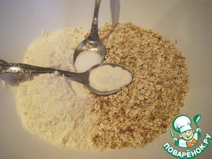Духовку сразу включаем на разогрев t 210-220 градусов. Смешиваем муку, хлопья "5 злаков" от Мистраль, соль и разрыхлитель.