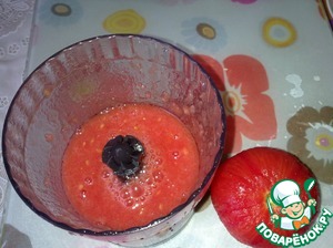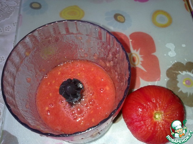 Помидоры бланшировать и очистить от кожуры, перемолоть с помощью блендера.