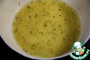 Для соуса смешать горчицу, лимонный сок, оливковое масло и воду.