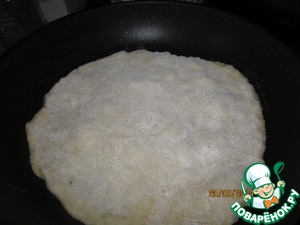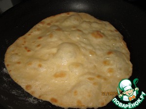 Ну просто все - до элементарности. Пресное тесто раскатала в тонкий пласт, смазала его растительным маслом. Жарить под крышкой - пара минут с каждой стороны.