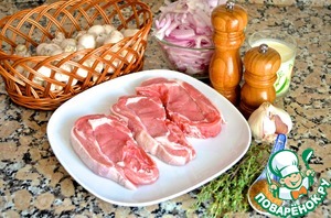 Ингредиенты для «Телятина на карамелизированном луке с грибным соусом»: