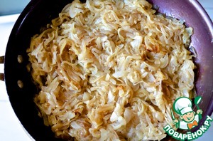 2. Лук нарезать полукольцами. В сковороде разогреть оливковое масло, выложить лук, посолить, поперчить и помешать. Готовить на самом медленном огне, помешивая, 30 минут.