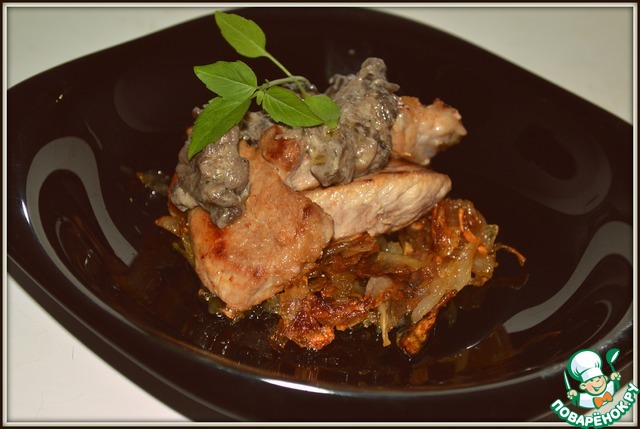 Рецепт «Телятина на карамелизированном луке с грибным соусом»: