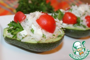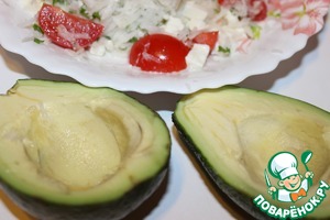 Наполнить салатом авокадо и можно подавать к столу.