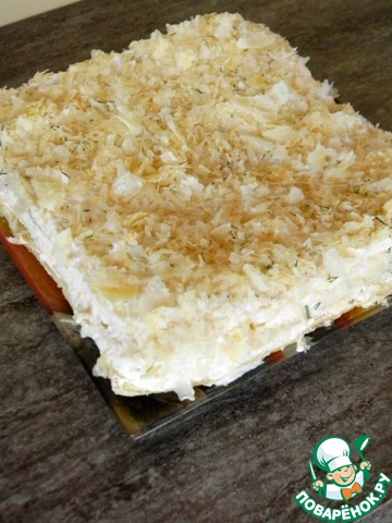 Закусочный торт с икорным кремом и семгой