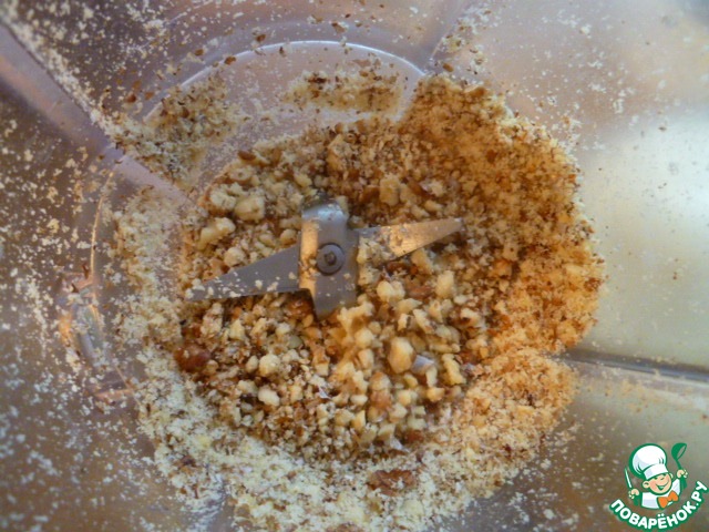 Для начала нужно измельчить орехи.