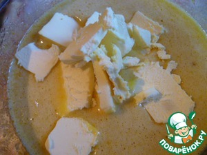 Снова тщательно перемешиваем и добавляем нарезанное масло.