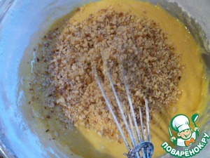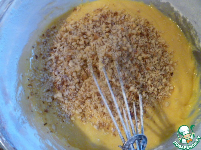 Потом добавить орехи, перемешать и добавить еще 1 стакан муки.