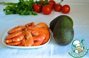 Ингредиенты для «Тарталетки с салатом из креветок и авокадо»: