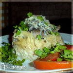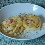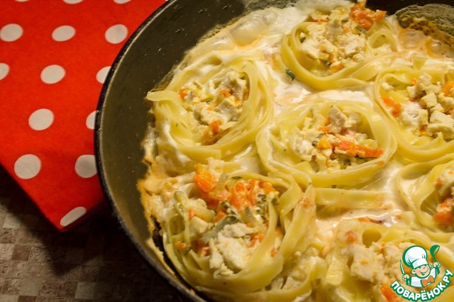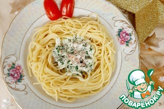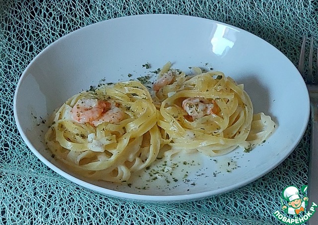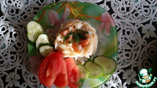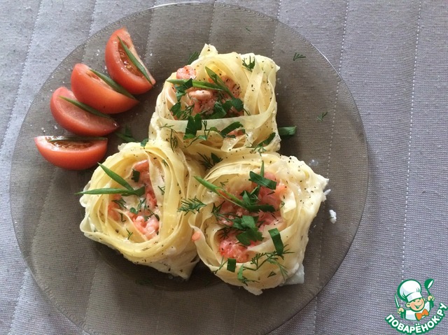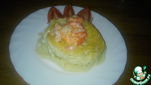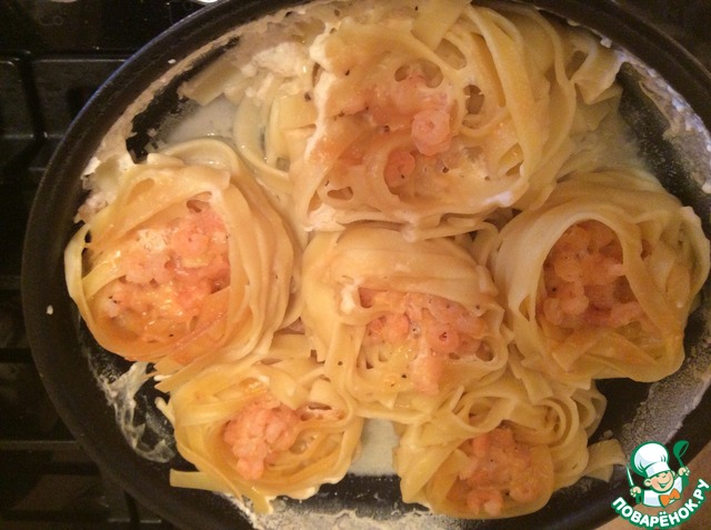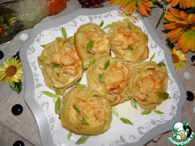 Гнезда с креветками в сливочном соусе