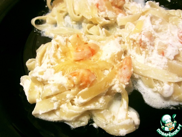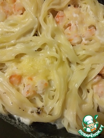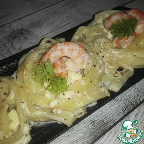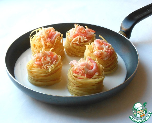 Рецепт «Гнезда с креветками в сливочном соусе»: