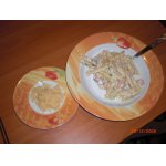 Только у меня все равно гнезда не получились такие безупречные, как на фото...пришлось их "хвосты" на тарелке руками в гнездо укладывать...короче, вчера готовила по рецепту, а потом ещё и гнездо свила