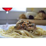 Обожаю пасту и все с ней связанное! Недавно прочитала, что классический итальянский способ приготовления «гнезд» – тушение в сковороде или сотейнике. Предлагаю приготовить такие «гнезда» с начинкой из креветок и сыра, а тушиться они будут в сливочно-чесночном соусе. Очень вкусно, рекомендую!