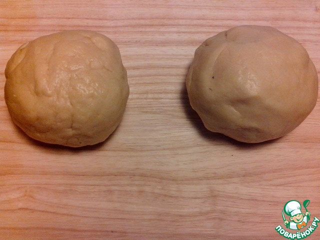 Разделить на две части, завернуть в пищевую пленку и отправить на 1 час в холодильник. |