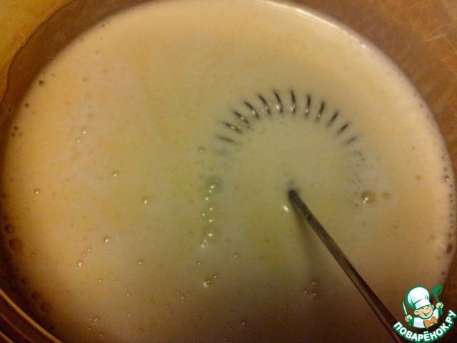 Вливаем молоко, ставим на плиту (средний огонь), помешивая, варим до загустения. |