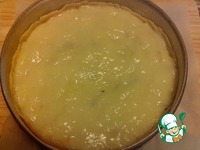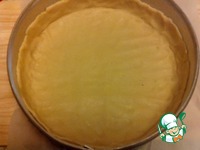 Берем обязательно разъемную форму (d=26 см), иначе пирог поломается. На дно формы выкладываем лист пекарской бумаги и распределяем одну половину теста, делая бортики, высотой 3-4 см. |