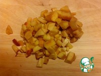 Минут за 20 до того, как будем доставать тесто из холодильника-вымоем фрукты. Персик (или абрикосы) нарезаем мелкими кубиками. |
