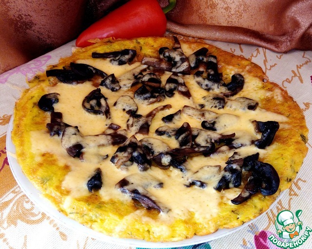 Когда пирог приготовится, выключаем плиту и посыпаем тертым на мелкой терке сыром. Оставляем минут на 10 постоять (чтобы сыр растаял).