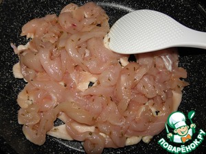 Затем также обжарить маринованную курочку до готовности.
