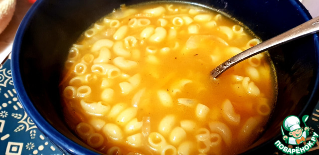Этот суп будет особенно красивым на вид, если макароны взять больших размеров или цветную пасту.