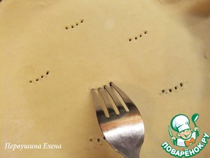 Прокалываем тесто в нескольких местах вилкой, чтобы при выпечке тесто не вздувалось.