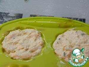 • Формы смазываем маслом. Выкладываем в них сырную массу. Отправляем в духовку на 10-15 минут при температуре 180 градусов.