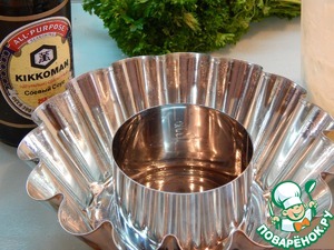 Чтобы места для грибов было больше, я вставила в форму кулинарное кольцо. Вот так. Заполненную форму убираем в холодильник часа на 2.