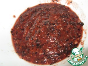 Помидоры ошпариваем и снимаем с них кожицу. Подготовленные помидоры взбиваем в блендере. Взбитые помидоры ставим на маленький огонь, посыпаем солью немного, и упариваем до половины массы.