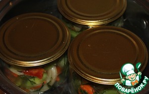 Баночки вынуть, закатать, перевернуть и укутать до полного остывания. Если салат будете делать без уксуса, то баночки лучше всего хранить в холодильнике или в погребе.