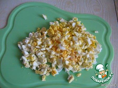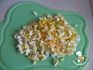 Яйца мелко порубить.