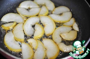Сковороду моем, нагреваем, кладём сливочное масло и груши.
